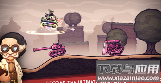 提升坦克火力,发射炮弹消灭敌方坦克与飞机,道具可提供三连发火箭、能量护盾和强力激光,跳跃动作则能避开地面埋伏的地雷;