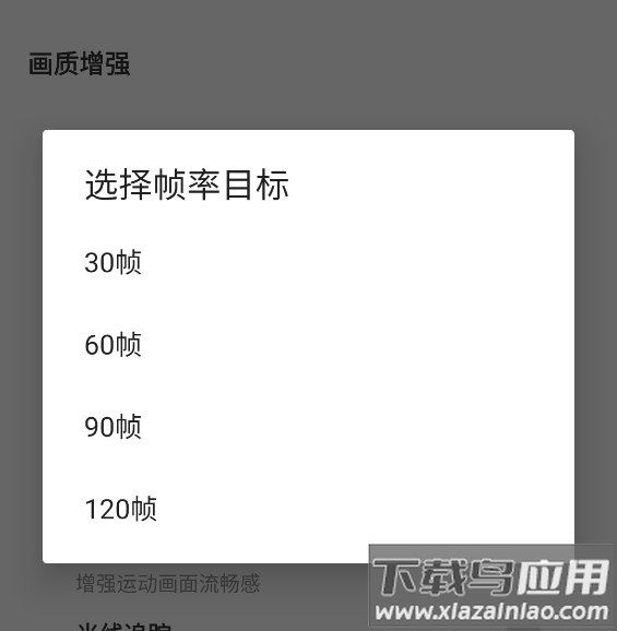 2、进入画质增强菜单,选择画面配置选项,这里可以设置画质等级、帧率目标和优化模式;