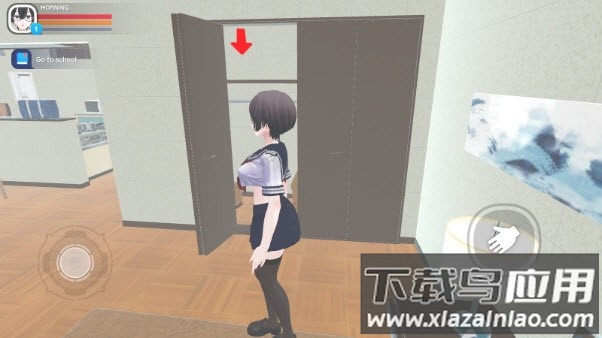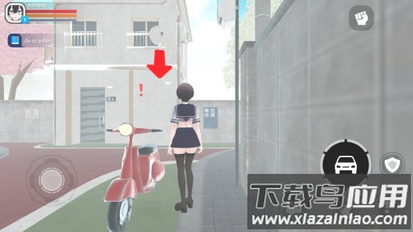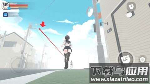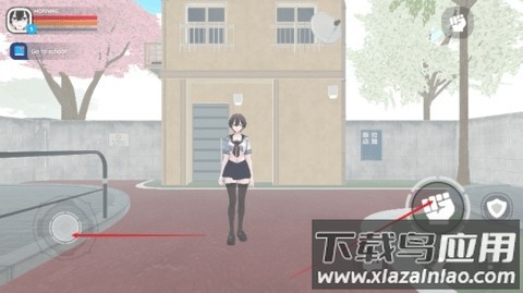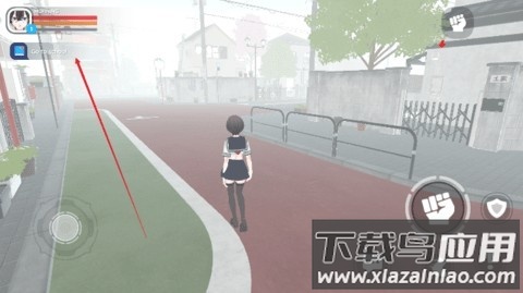 4、按照游戏指引控制角色移动,跟随红色箭头指示前往学校区域。