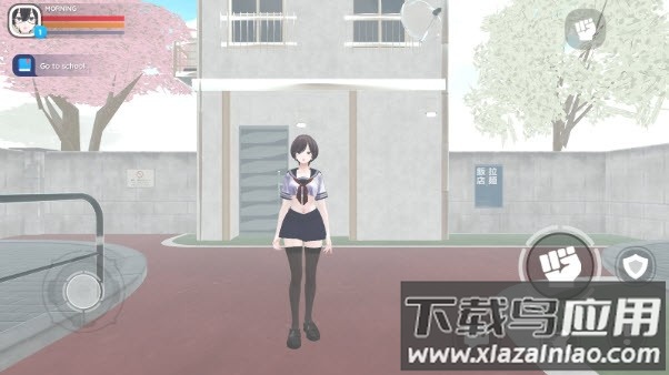 5、到达学校后熟悉右下角动作指令,包含攻击、奔跑、防御等战斗操作。