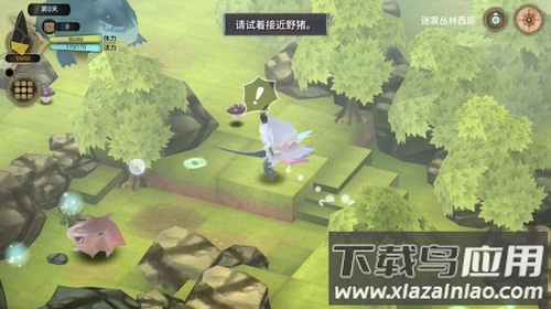 2、进入迷雾森林后同时发现野猪与迷雾癞蛤蟆,优先选择狩猎野猪并成功收集到首批生命能量。