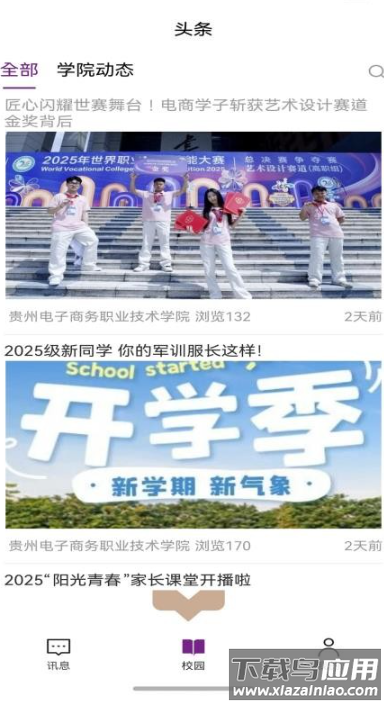 3、在校园板块,就能阅览所有头条信息和学院动态,并能高效处理;