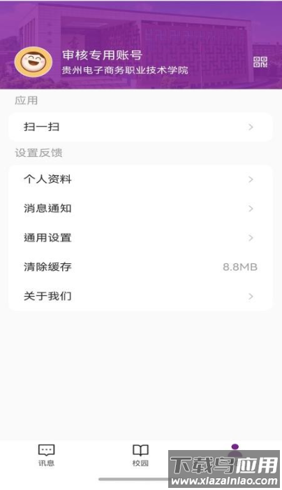 4、在个人中心即可查看资料和通知,并能扫码和清除缓存数据;