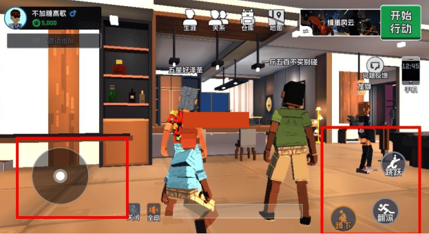 3、通过屏幕两侧虚拟按键控制角色移动与互动;