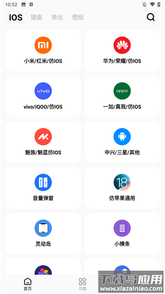 2、根据需求选择所需功能,例如iOS小组件、iOS键盘、Q改在线型号、高仿iOS相机、iOS浏览器、灵动岛等,点击进入相应模块;
