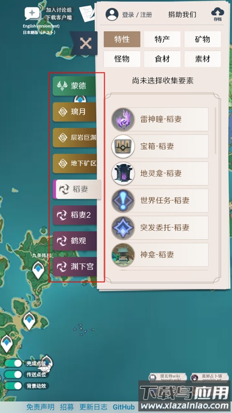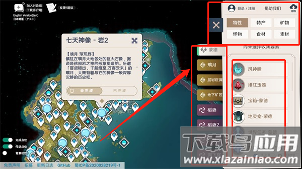 1、工具默认展示常用资源分类,包括风神瞳、绯红玉髓、宝箱与地灵龛等;继续下拉页面可选择更多类型,如特产、矿物、怪物、食材与素材等。
