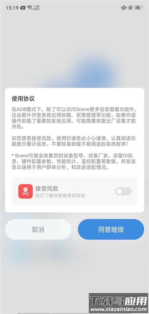 进入此模式前需阅读并同意使用协议。ADB模式除扩展信息查看范围外,还会开放系统应用卸载与权限管理等进阶功能。请注意误删系统应用可能导致设备无法正常启动,使用时务必谨慎操作,仔细阅读各项功能提示。