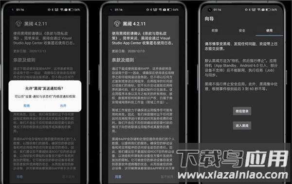 4、启动黑阈服务:打开黑阈应用,允许通知权限,同意隐私政策后进入主界面。