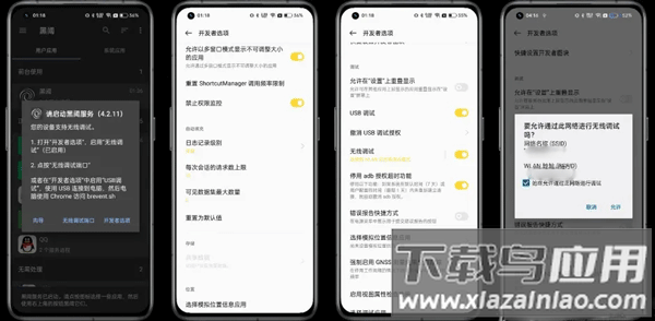 5、开启无线调试:进入开发者选项,开启禁止权限监控、USB调试与无线调试开关;在无线调试授权弹窗中勾选始终允许。