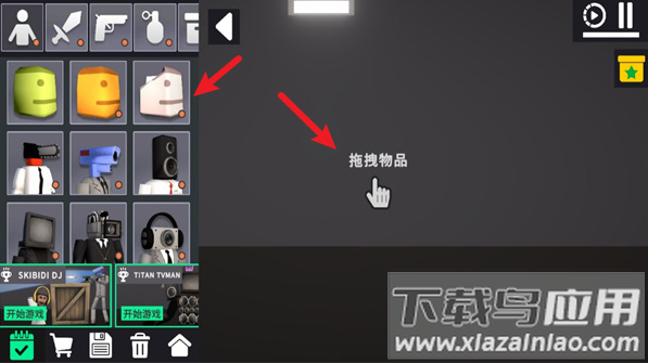 2、进入场景后,将左侧物品拖动到右侧空白区域进行放置。