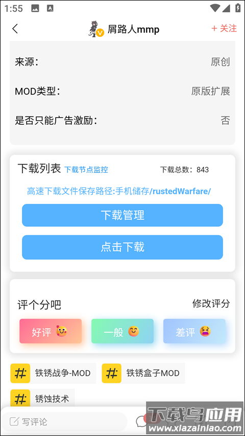 1、目前模组分为三种格式:安卓安装包(apk后缀)、压缩包(zip或rar后缀)、铁锈专用格式(rwmod后缀)。