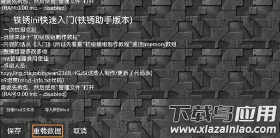 4、解压完成后进入游戏模组界面,勾选需要使用的模组,点击重载数据并保存;若模组有错误会显示红色提示。
