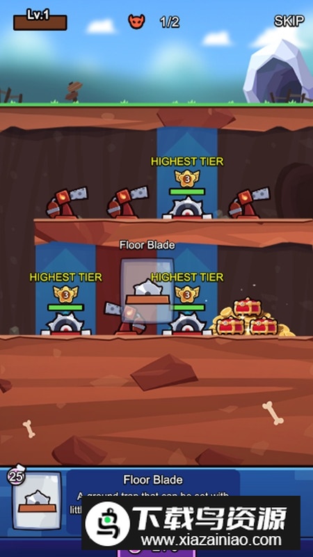 在陷阱大师合并防御这款充满创意的塔防游戏中,你将扮演一名足智多谋的守卫者,专门在山洞通道中布置精巧陷阱,阻止贪婪恶棍盗取珍贵宝藏;通过巧妙组合各类机关与升级技能,你可以打造出令人惊叹的防御阵型,体验策略布局带来的无穷乐趣,喜欢的就在本站下载。
