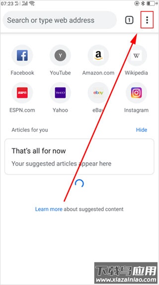 1、启动谷歌搜索手机版,该软件需要配合科学上网工具使用,点击界面右上角的菜单图标;