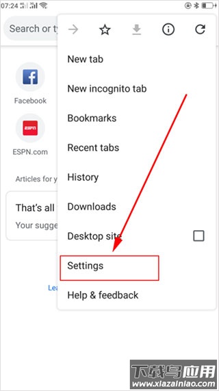 2、在弹出的菜单列表中找到Settings选项,点击进入设置界面;