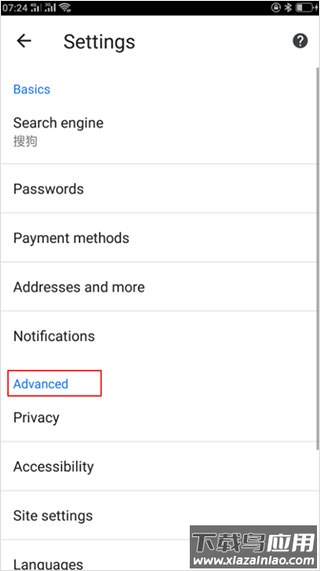3、在设置界面中找到Advance高级设置模块;