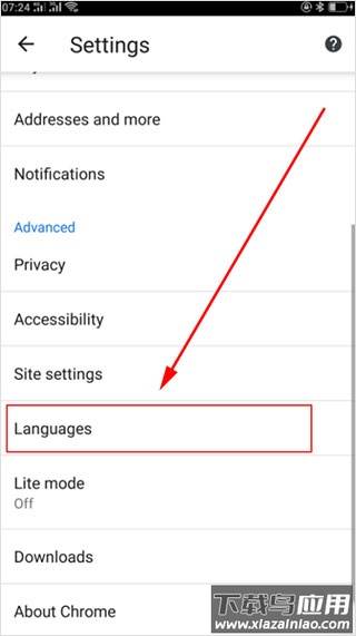 4、在高级设置下方定位Languages语言选项,点击进入;