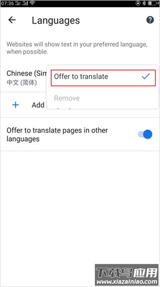 7、最后在弹出的选项中选择offer to translate功能,即可将浏览器界面切换为中文显示。