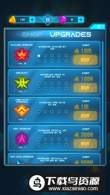 3. 战斗画面绚丽夺目,色彩与光效随战机升级不断变化,支持全屏观看模式;
