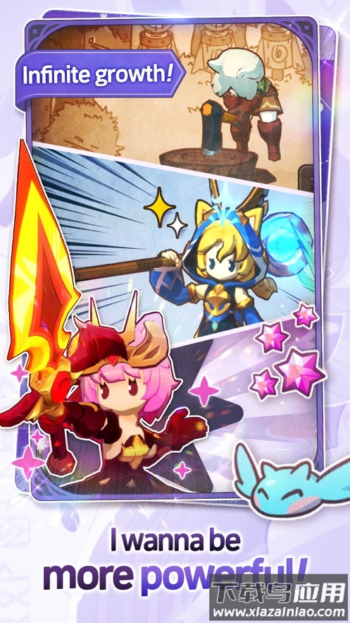 5、享受暴风成长内容,孵化精灵强化潜力,收集个性时装,打造伟大骑士装备,无限强化火水土风光五种属性技能。