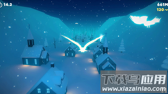 3、飞行中需注意两点:保持画面明亮不陷入黑暗,同时小心避开黑鸟和沿途的建筑障碍。