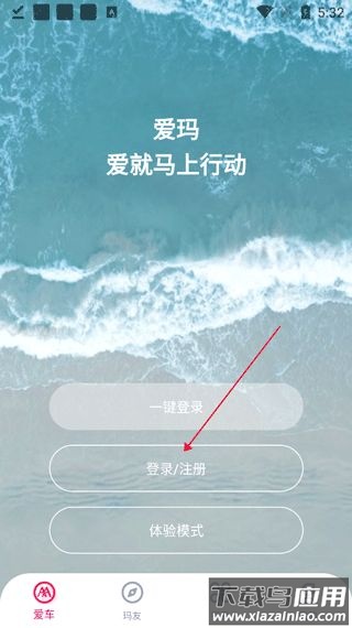 1、打开爱玛出行APP,点击首页登录入口进入。
