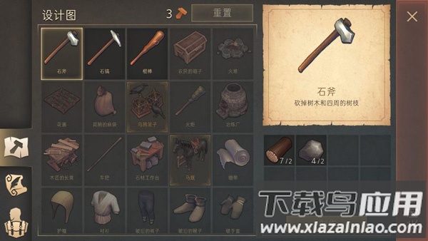1、回归冷兵器时代,所有生存工具都需要亲手采集材料并制作完成;