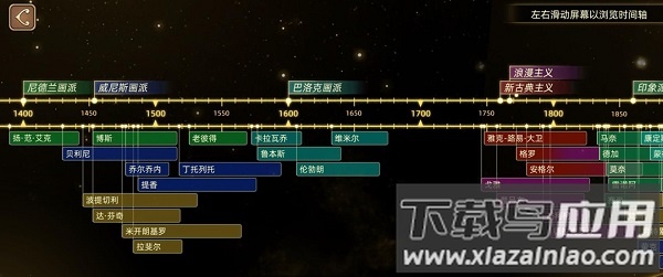 最实用的功能是按年代顺序查询艺术流派、画家及其作品,整个艺术发展脉络清晰可见。