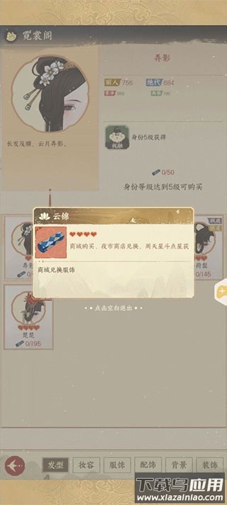 在霓裳阁中,使用云锦道具兑换各类限定服饰;云锦可通过商城购买、夜市商店兑换或周天星斗点星获得。