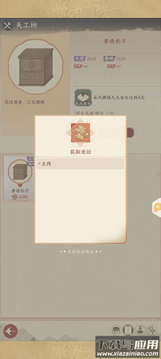 天工坊是家具兑换系统,使用鲁班木道具可兑换各类家具;鲁班木可通过剧情关卡获得。