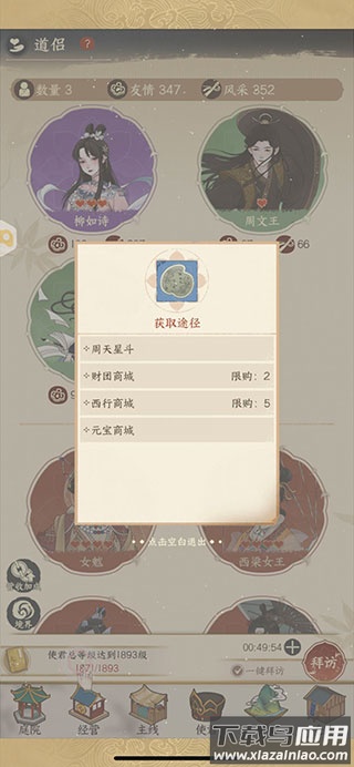 ①、道侣友情:反映与掌柜的关系亲密度,友情值越高,仙童带来的营收越多;