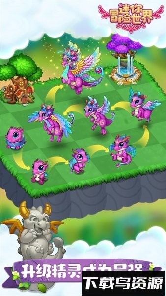 收集17种精灵,合并精灵蛋孵化养成,让它们协助采集与建造;