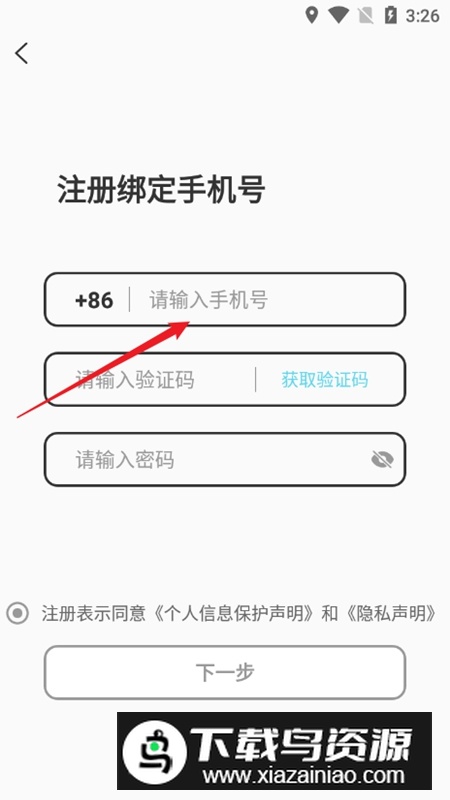 3.按页面提示输入手机号,点击获取验证码;