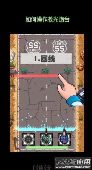 1、通过手指在屏幕上画线,实时操控激光炮台的攻击方向;