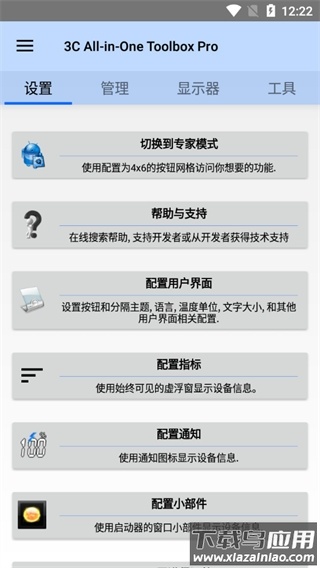 1、启动应用后进入主界面,包含设置、管理、显示器和工具等板块;