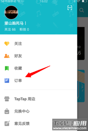 2. 进入个人资料界面后找到并点击订单选项;