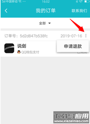 3. 在订单列表中找到需要退款的游戏项目,点击该项右上角的三个点图标,在弹出的菜单中选择申请退款;