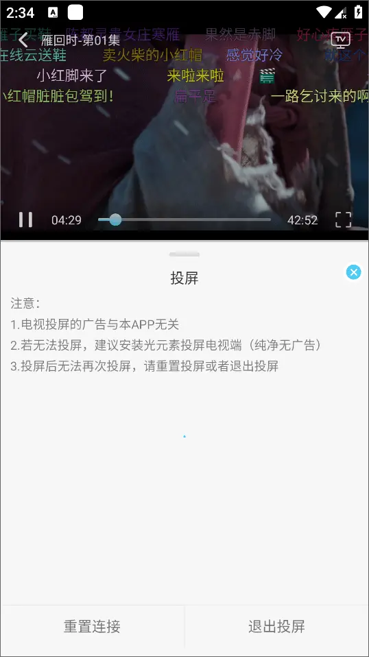 3、支持投屏:连接投屏设备后可直接投射至大屏幕,通过手机端控制播放进程;