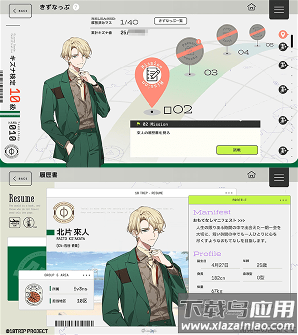 18TRIP以旅行为主题展开角色扮演,故事背景设定在近期的横滨滨十八区;玩家将加入旅行社参与重建旅游业,逐步晋升为社长,带领团队探索多个观光区域;丰富多样的场景和独特景点等待你的发掘,现在就出发开始旅行吧。