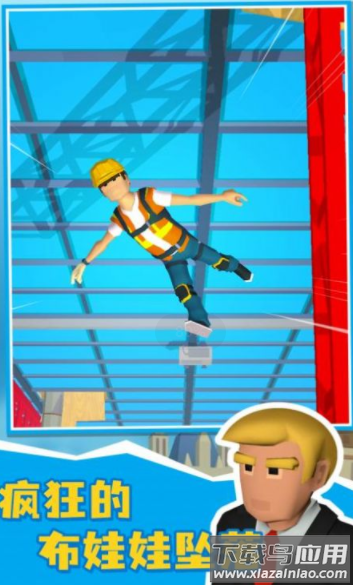 1、采用卡通画风,操控布娃娃从高楼或机械顶端坠落;
