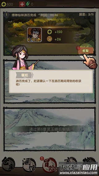 6、当成功通关副本或侠客体力耗尽时,冒险暂告段落,此时即可领取丰厚的冒险奖励。