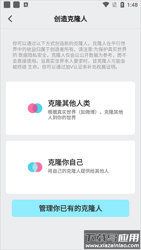 在发现页面中,用户可以创建克隆人,支持克隆自己或他人;