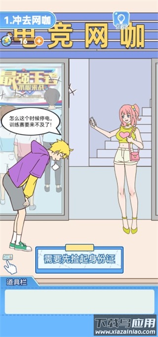 1、进入我的室友是主播游戏后,首关任务是冲进网吧,由于主播家中停电,必须借助网吧完成直播;