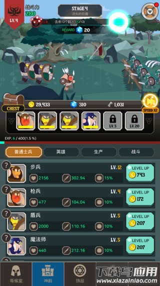 战斗过程中获得的金币可用于提升士兵等级,强化其生命值与攻击力等属性,从而应对愈发强大的敌人。