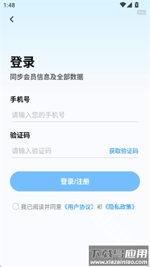 3、若选择手机号登录,输入手机号码及验证码,点击登录或注册按钮即可完成