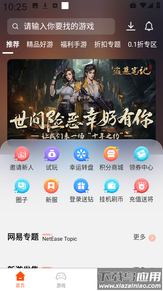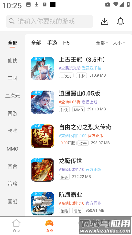 3、点击底部导航栏中的“游戏”选项,进入游戏列表页面;