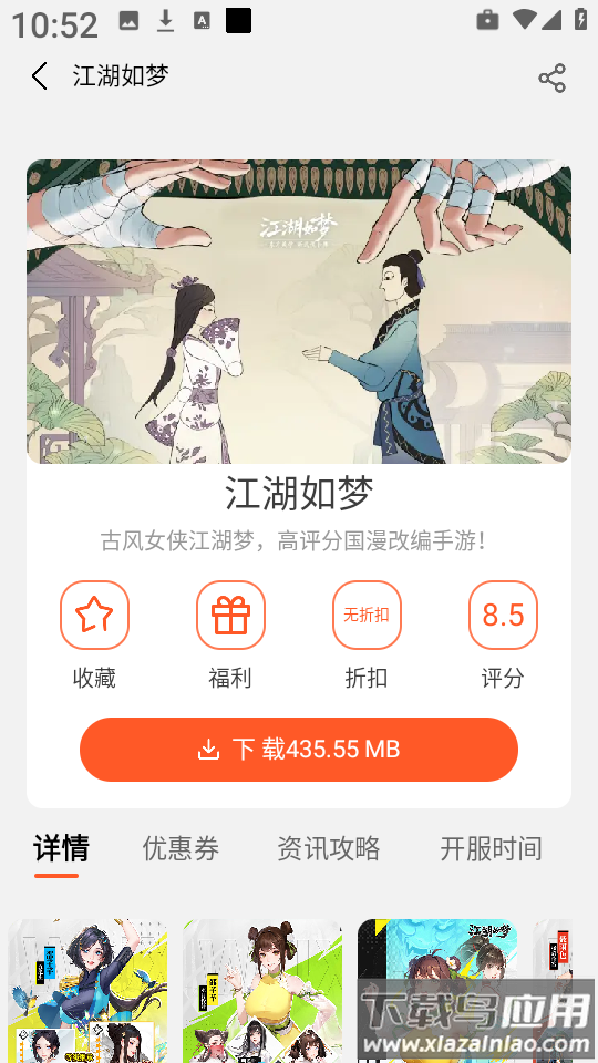 4、选择任意一款游戏,例如“江湖如梦”,点击下载按钮即可开始安装;