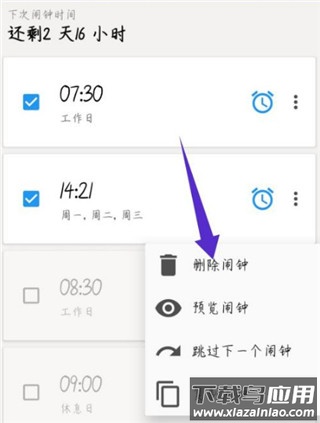 1、打开已安装的使命闹钟高级版,进入闹钟主界面,点击闹钟右侧的三点图标。