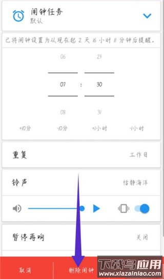 5、进入闹钟任务页面后,点击底部中间的删除闹钟按钮。