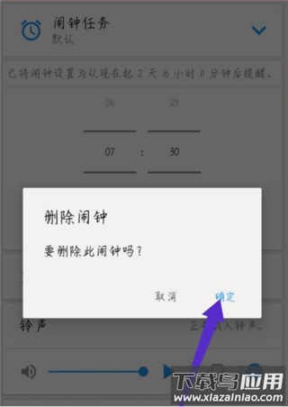 6、在删除确认窗口中点击确定,即可完成闹钟的删除操作。